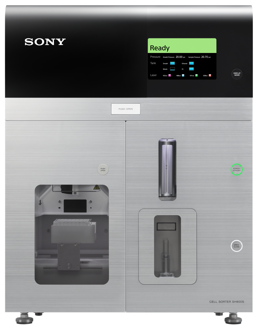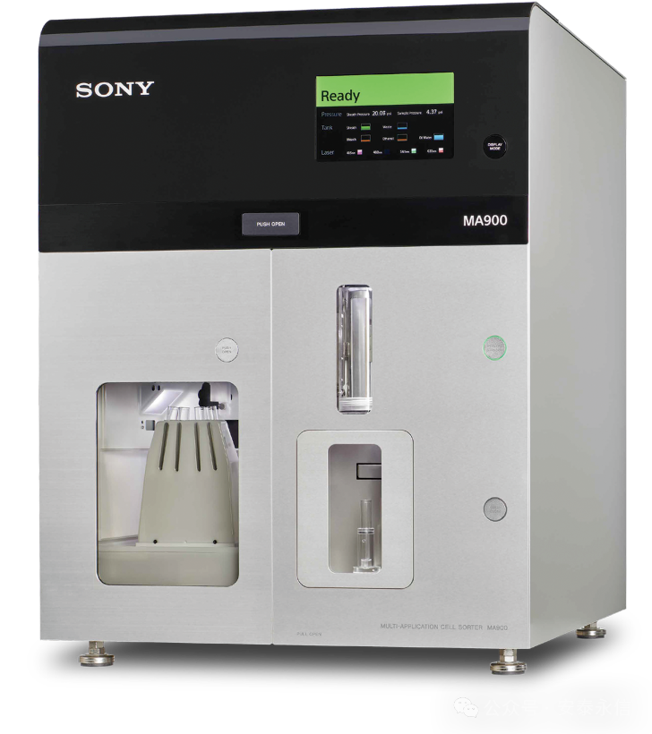 a,APOE3/3 和 APOE4/4 iMG 的示意图。b,APOE3/3 和 APOE4/4 iMG ± fAβ 中脂质荧光染料 (LipidSpot) 的定量(每个条件 n = 3 个重复孔;平均值± s.e.m.)。c,在 b 的最终时间点将每个细胞的平均 LipidSpot 荧光标准化为未处理 (NT) 条件。单个点表示重复孔(每个条件 n = 3 个重复孔;未配对的双侧 t 检验;每个条件,平均值 ± s.e.m)。d,APOE4/4 iMG ± fAβ 中显著差异表达基因的标准化基因表达计数(每个条件 n = 3 个重复孔,P 值由 DEseq2 确定;平均值± s.e.m)。e,未经处理(左)或用 LipidSpot 处理 fAβ(右)的原代大鼠小胶质细胞。比例尺,200 μm。f,在 e 中归一化为未处理图像的每个细胞的平均 LipidSpot 荧光(每个条件 n = 3 个重复孔;未配对的双侧 t 检验;平均值 ± s.e.m)。g,APOE4/4 和 APOE3/3 iMG ± fAβ 的 CARS 图像。比例尺,20 μm。在至少两个独立实验中复制数据。h,CARS 显微镜的定量。每个点代表来自单个细胞的脂质测量值 (APOE33 n = 47;APOE44 n = 38;未配对的双侧 t 检验)。i,fAβ 处理的 iMG 的 CARS 谱图(红色)和常见脂质种类的参比谱图(黑色)。j,d-葡萄糖脂质组学测量示意图13C 掺入 BV2 细胞 + fAβ。 本次研究揭露了脂质代谢和小胶质细胞功能障碍在阿尔茨海默病发病机制中的潜在作用,阐述了阿尔茨海默病的可能发病因,并为阿尔茨海默病的治疗提供了新思路和新策略。 。 [1] Haney, M.S., Pálovics, R., Munson, C.N. et al. APOE4/4 is linked to damaging lipid droplets in Alzheimer’s disease microglia. Nature 628, 154–161 (2024). https://doi.org/10.1038/s41586-024-07185-7 Sony MA900是索尼公司最新推出一款的多功能型全自动流式细胞分选仪,基于成熟的CoreFinderTM全自动校准技术以及可更换式微流体芯片的液路设计,在方便易用、稳定可靠的基础之上,配备了立体式双光斑4激光激发,允许同时检测12色荧光,以及同时进行4路细胞分选,从而更加广泛地满足用户多参数分析及分选的需求。 01