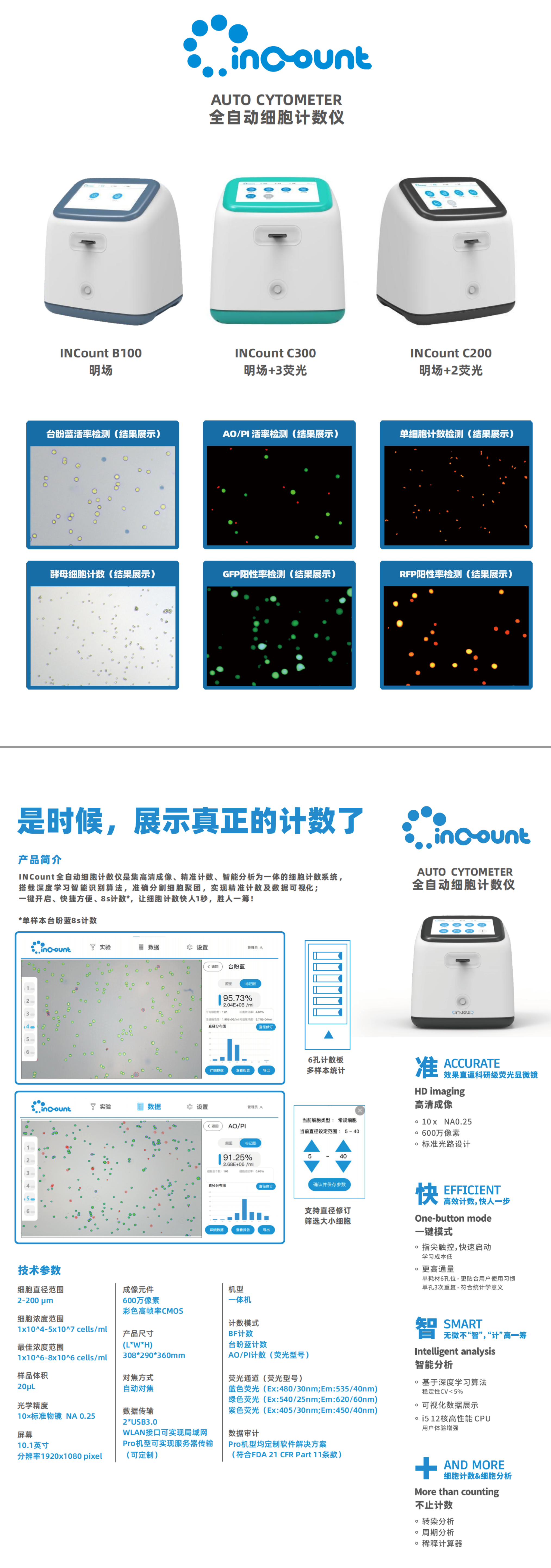 INCount B100/C200/C300 全自动细胞计数仪