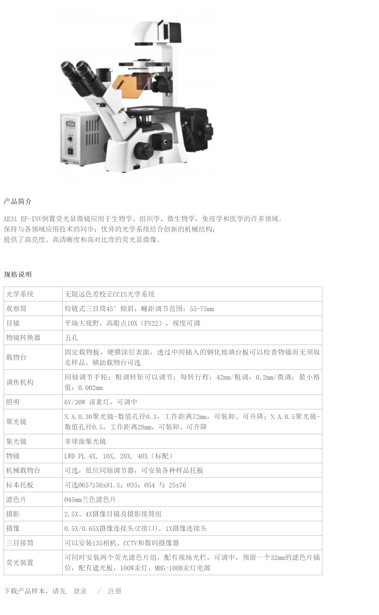 AE31 EF-INV 倒置荧光显微镜应用于生物学、组织学、微生物学,免疫学和医学的许多领域。保持与各领域应用技术的同步;优异的光学系统结合创新的机械结构;提供了高亮度、高清晰度和高对比度的荧光显微像。