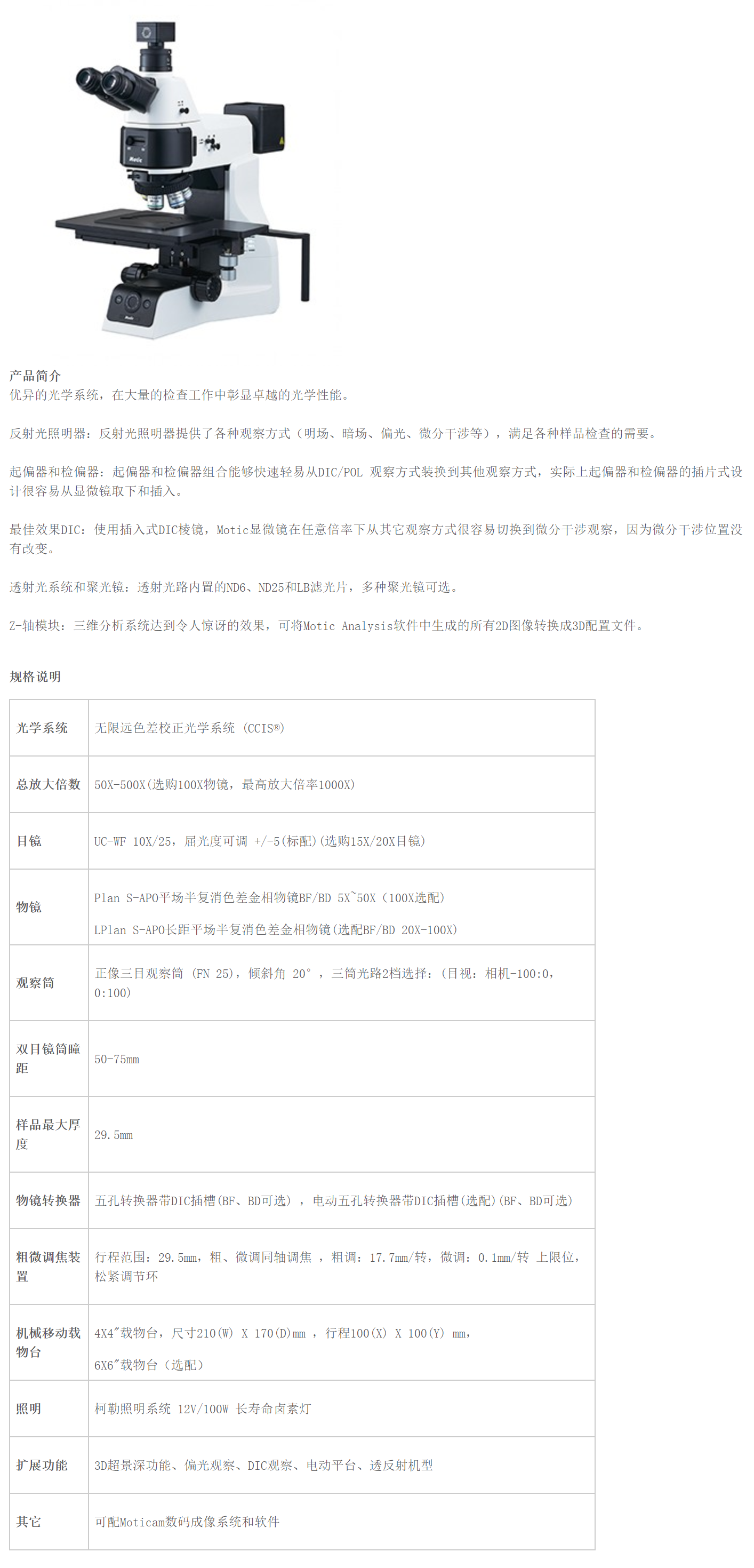 优异的光学系统,在大量的检查工作中彰显卓越的光学性能。 反射光照明器:反射光照明器提供了各种观察方式(明场、暗场、偏光、微分干涉 等),满足各种样品检查的需要。